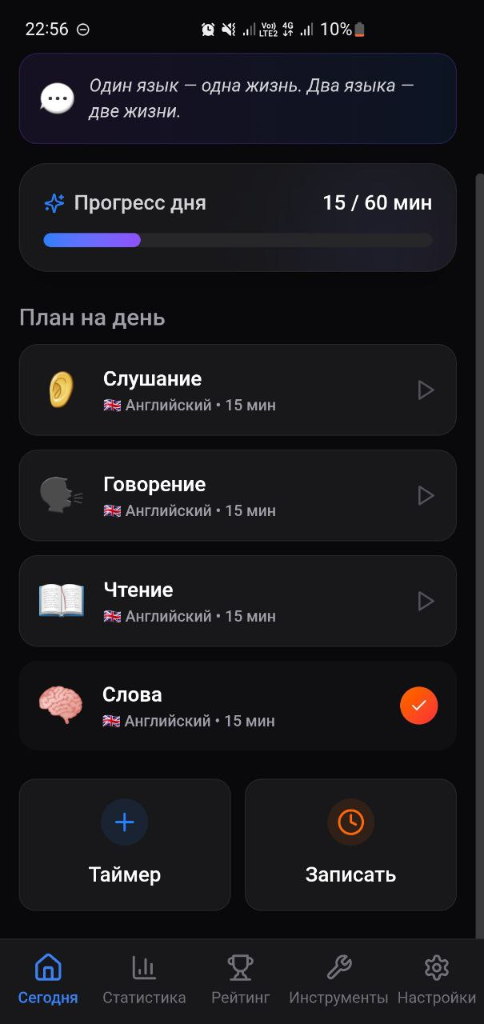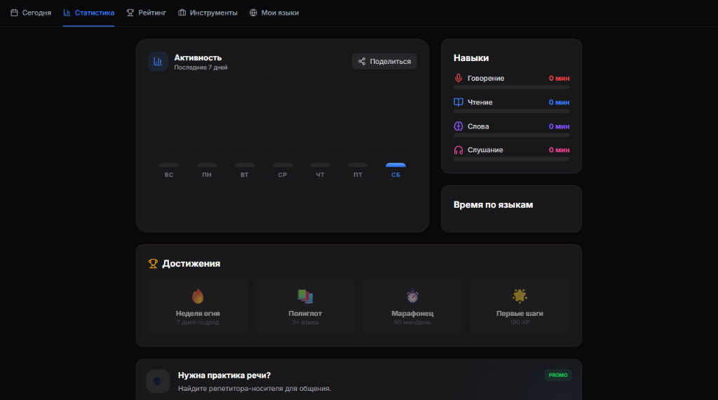 PolyFlow помогает отслеживать прогресс изучения языков, поддерживать мотивацию и достигать целей. Бесплатно.